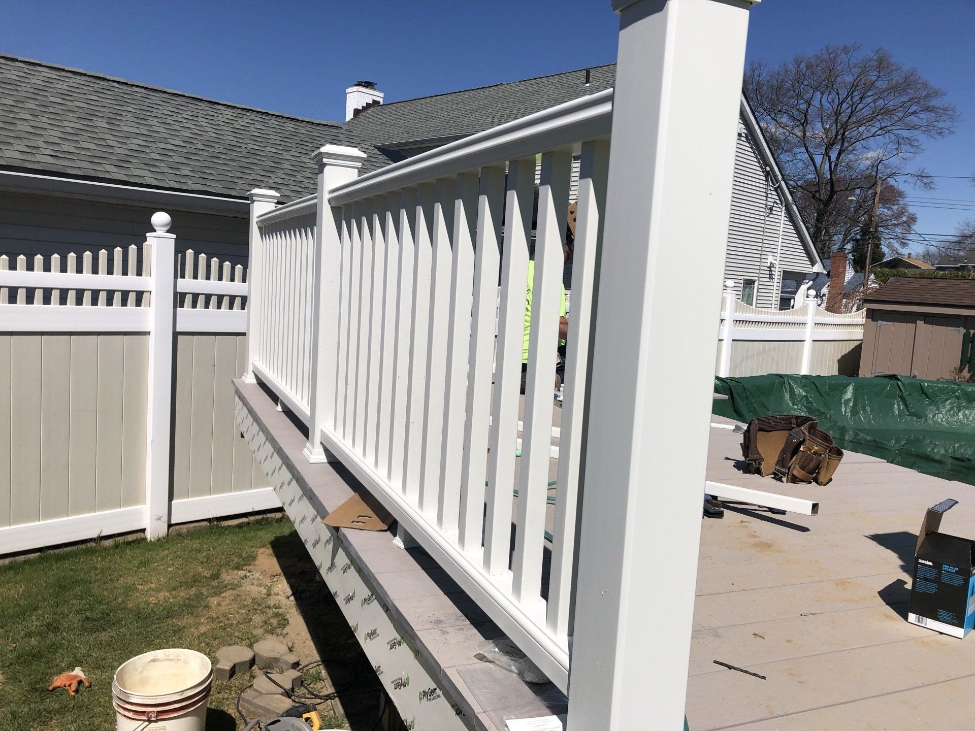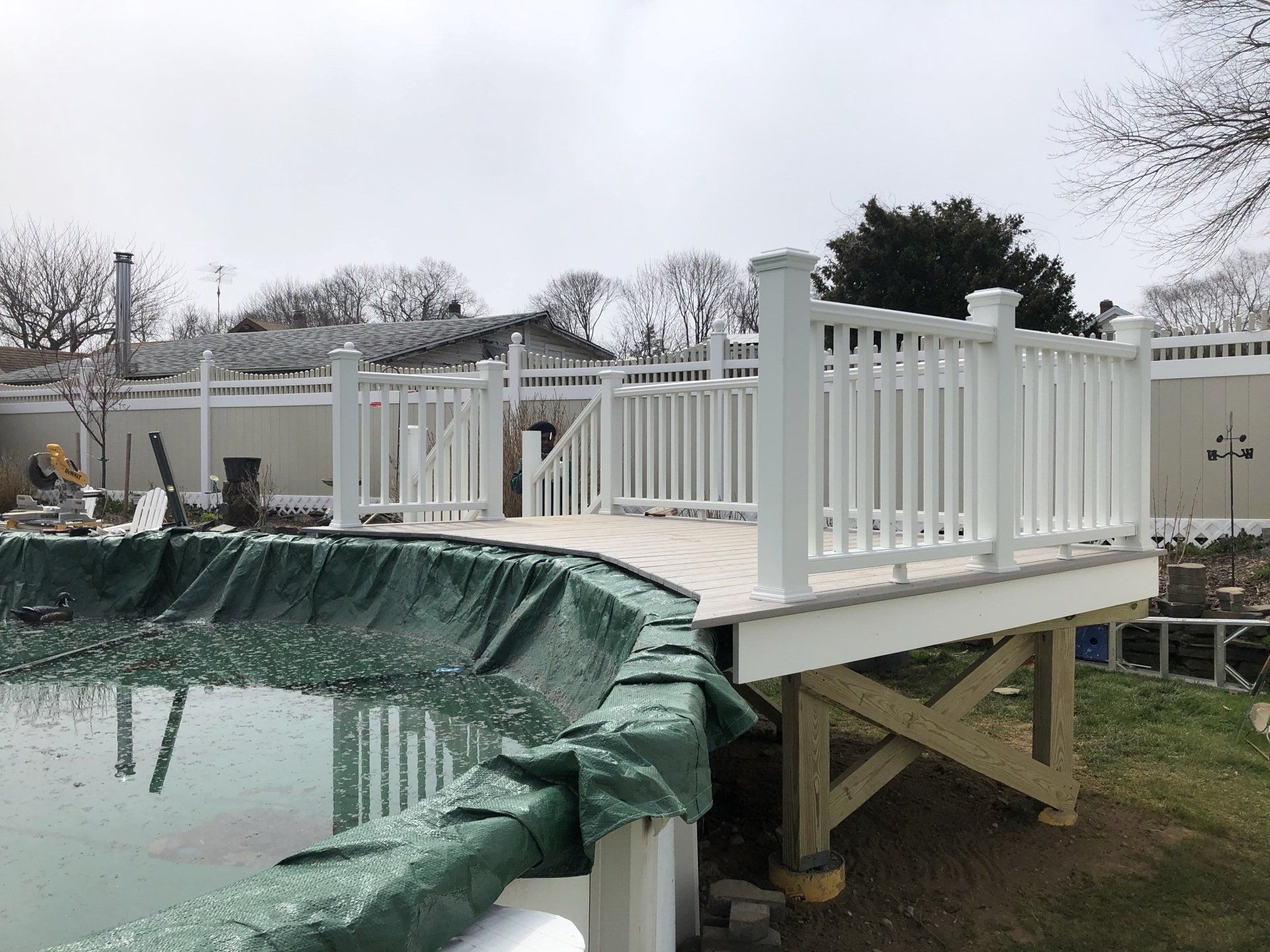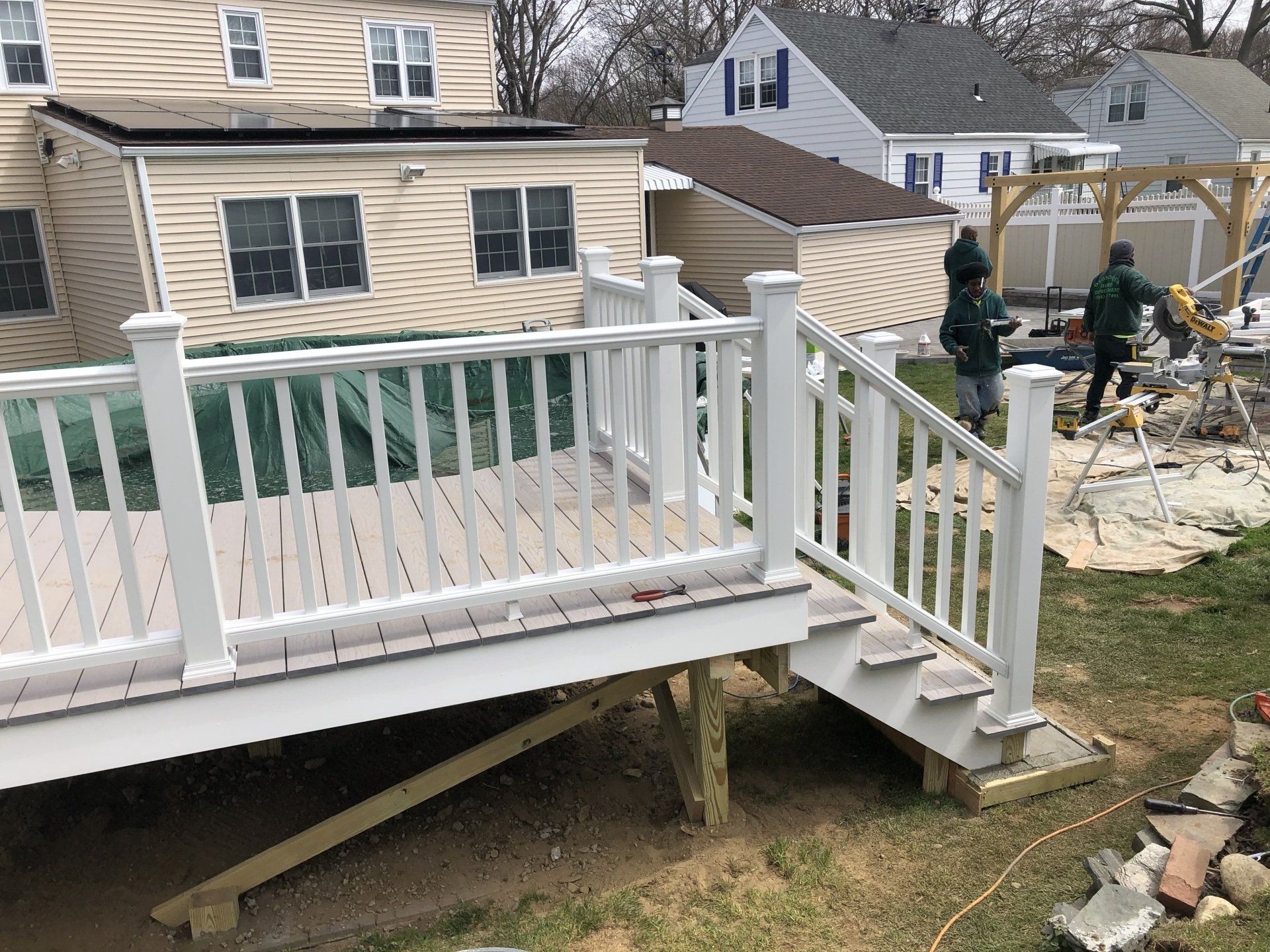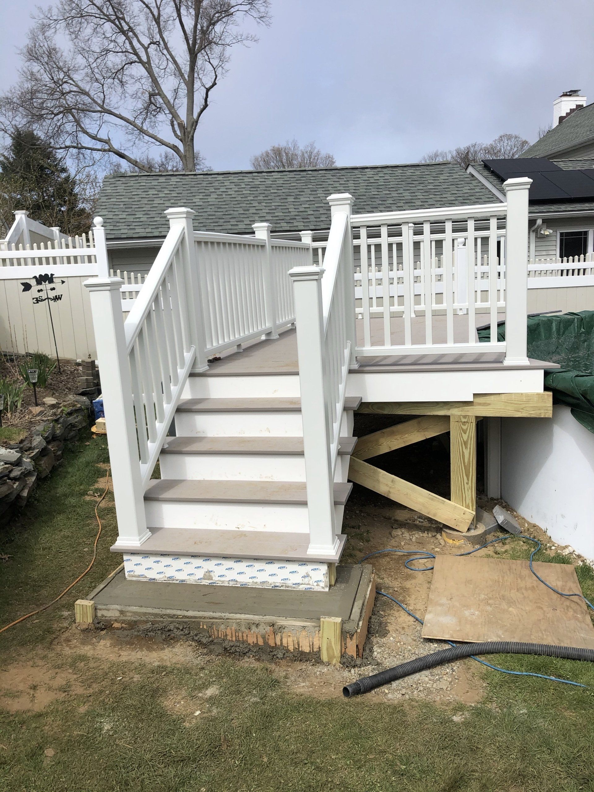 All white with slate gray decking (Azek)